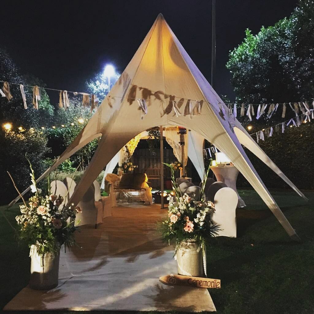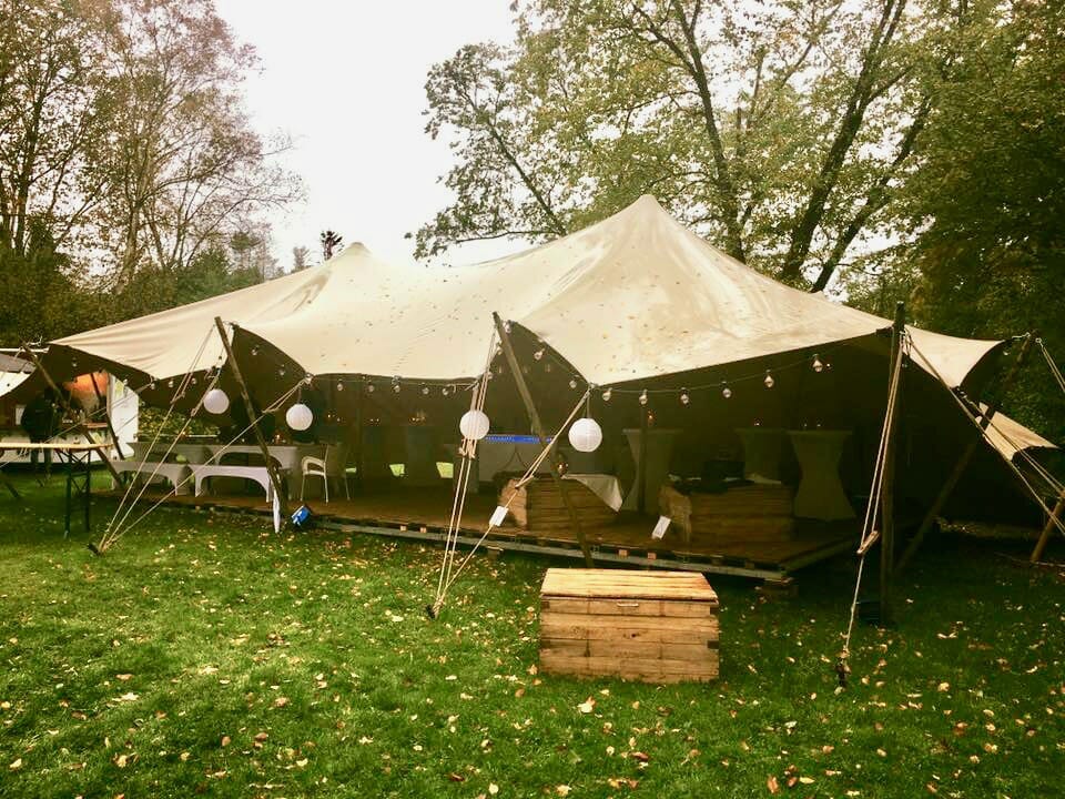 Sailcloth tent (2 middenpalen) voor bruiloft, Enschede