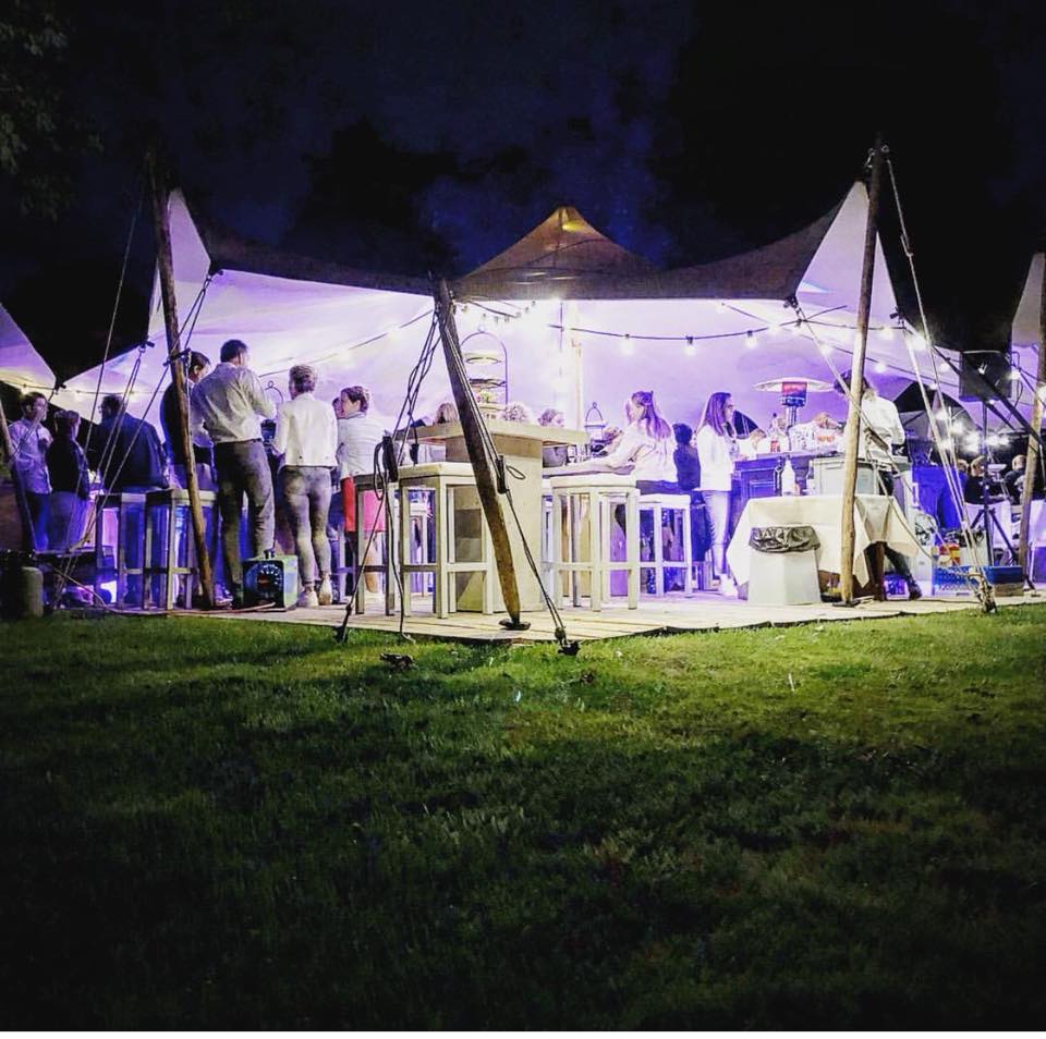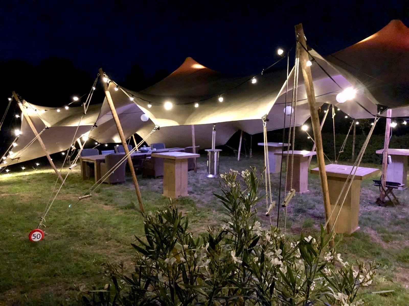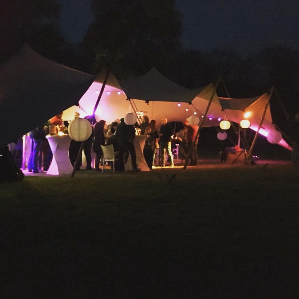 Stretchtent en verlichting voor verjaardagsfeest, Wierden