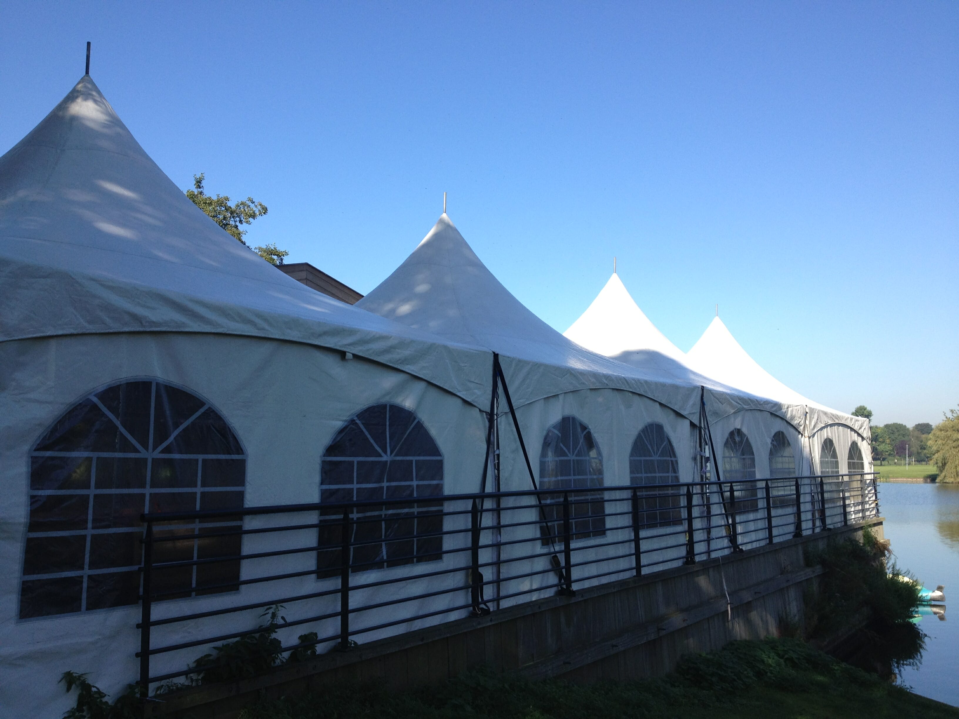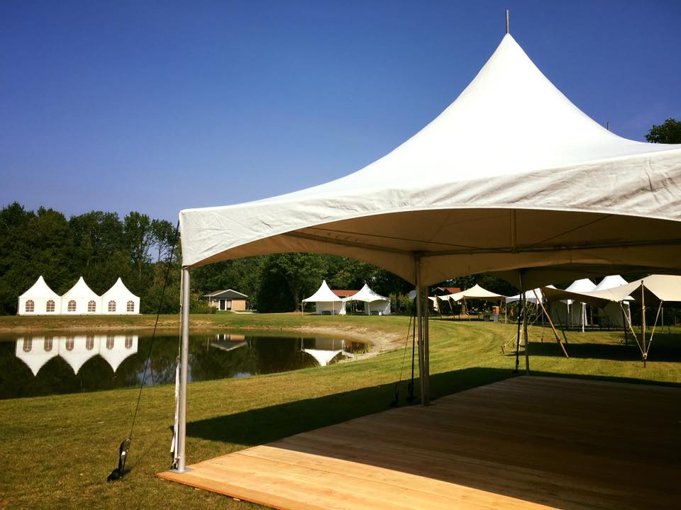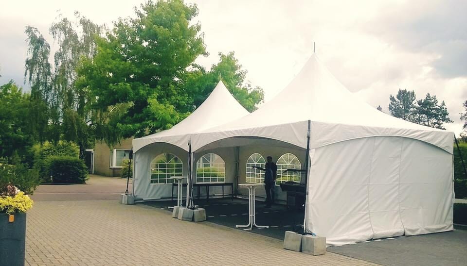 De topper onder de tenten. Een pagodetent, met name door zijn sierlijke, puntige dak, zorgt ervoor dat je gasten direct weten dat er iets te vieren valt of een mooi evenement te beleven is. Deze tent kan geschakeld worden aan andere pagodes, door middel van regengoten blijven je gasten dan ook droog. Zowel in een vierkant (met goot bij de vier middenpalen), naast elkaar, in een L- of U-vorm, maar net wat jouw evenement nodig heeft!