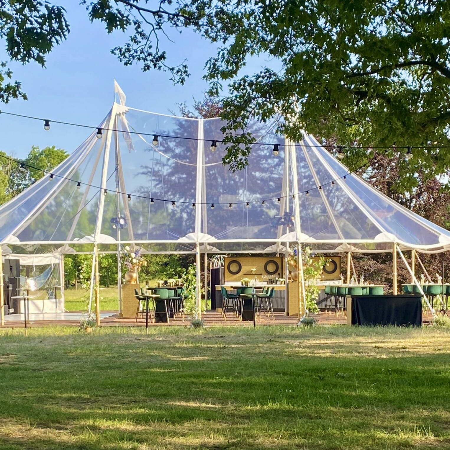 Echt de állermooiste van alle tenten! Deze superstijlvolle, transparante sailcloth tent gloeit je tegemoet. Met verlichting bouw je een sfeervolle avondlocatie, overdag heeft de tent het effect van een luxe kas.