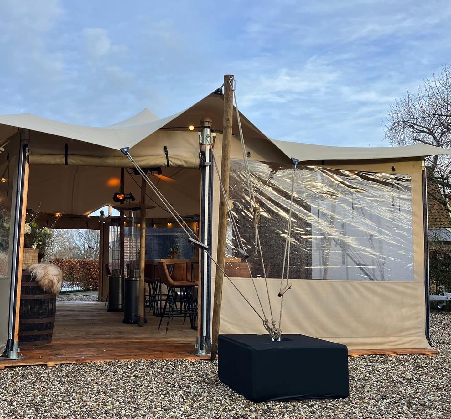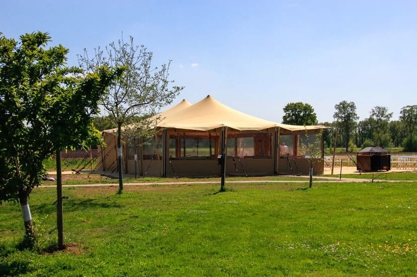 Met een paar heaters in de tent blijft het ook in voor- en naseizoen (lees: van oktober tot en met maart) lekker warm in deze tent!