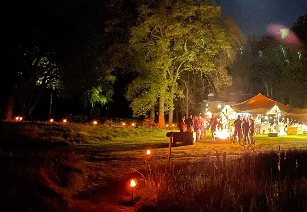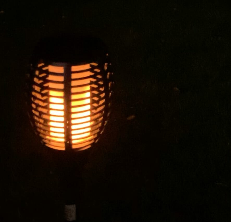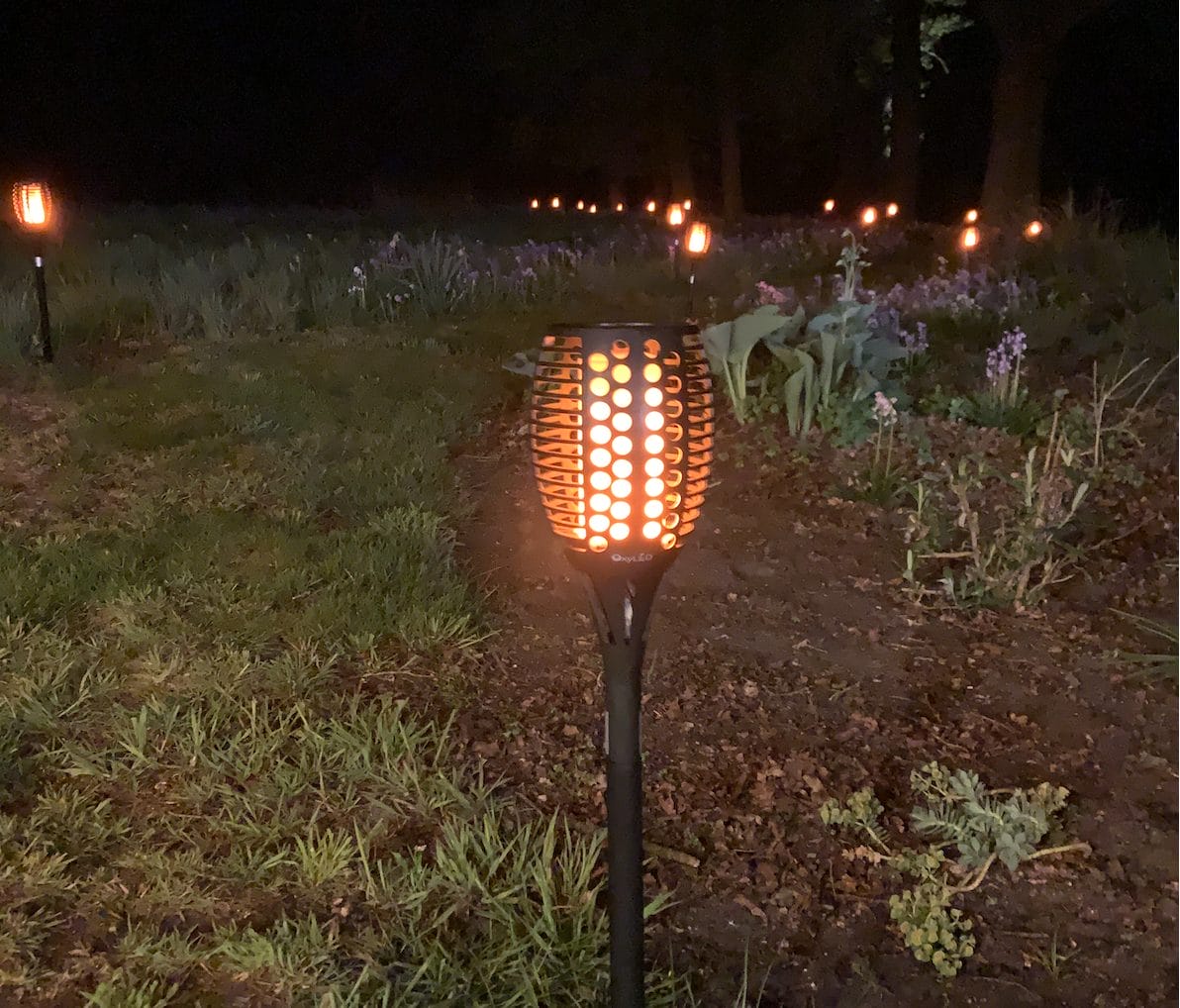Kwalitatieve fakkel, die urenlang mooi flikkerend brandt vanaf zonsondergang. Heel sfeervol om bijvoorbeeld een pad van en naar de tent mee te verlichten, of om bij tentharingen te plaatsen zodat je gasten daar in het donker niet over struikelen.